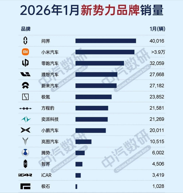 1月份一过,各大车企们纷纷公布了2026年一月份的战报。